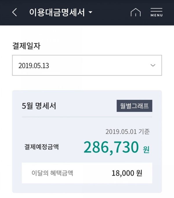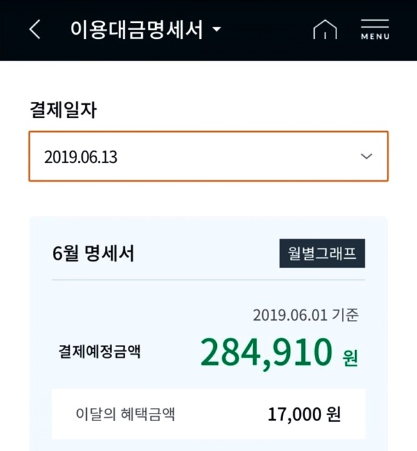 체크카드든 신용카드든 카드를 사용해서 할인을 받았을 경우에는 카드 명세서에서 할인된 금액만큼 결제가 되는 거예요. 저는 이 점이 정말 정말 좋았답니다. 한 달에 30만 원 실적을 채울 때는 내 통신비가 3만 8천 원으로 잡히는데 실제 결제를 하면 2만 1원이 되는 거니까 할인받는 17000원을 덜 쓰고도 할인 금액을 채우는 느낌적인 느낌 때문에요!
